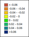 DATA COMPARISON: Landsat satellite imagery gives enrolled farmers feedback on the change in crop health far more quickly than the field data being collected and analyzed in the RCPP. The NDVI image (normalized difference vegetation index) compares the previous year’s image with the current year. Red shows declines in greenness, often indicating drowned out areas, while the blue and green indicate positive responses to the treatments showing healthier plants. The scientists use the images to target the best areas for additional work, such as soil plant or water sampling to assess soil, environmental and plant health.